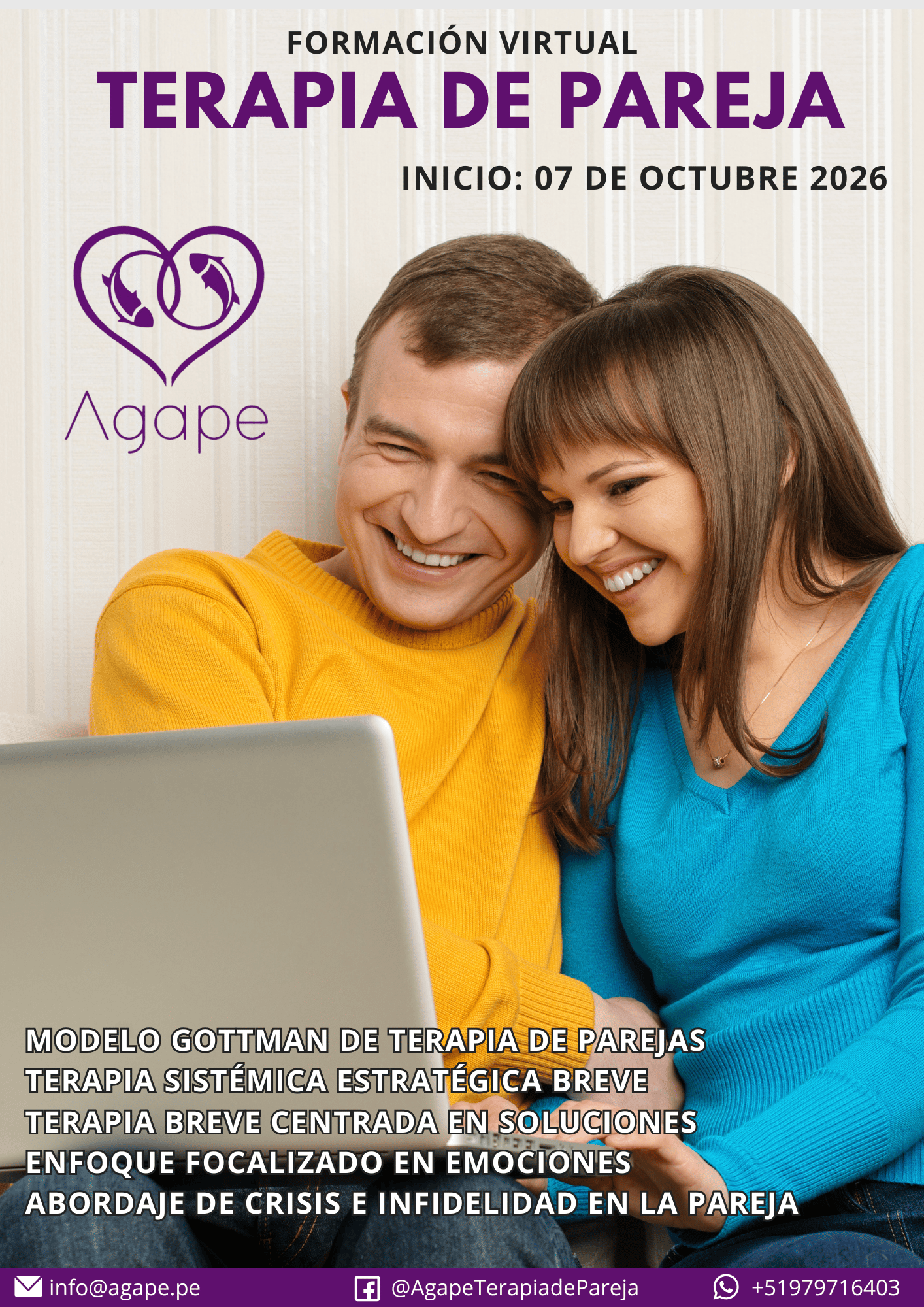 El INSTITUTO AGAPE – TERAPIA DE PAREJA organiza una formación de alto nivel académico y clínico de “Terapia de Parejas con mención en Crisis por Infidelidad: Desde un modelo integrativo basado en la Terapia Sistémica Estratégica Breve, el Método Gottman y el Enfoque Focalizado en Emociones” a cargo de los Directores del Instituto: FADIA SIERRA, GIANFRANCO RAMUNNI y ROBERTO VECCO.
